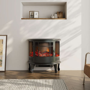 2000W Freestanding Electric Stove Heater LED Flame Log Wood Burner Effect Electric Fireplace