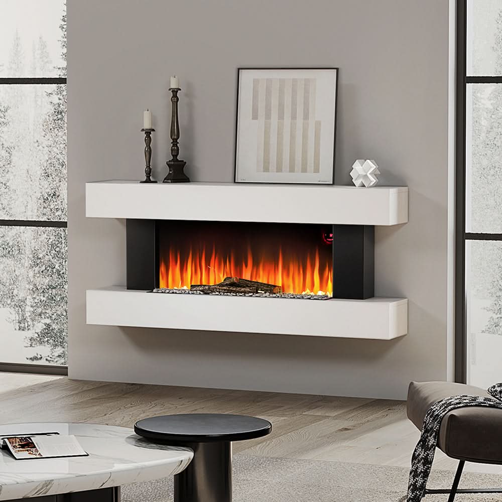 🔥【Modern White Wall-Mounted Design】: Sleek 132cm x 58cm fireplace surround in classic white, seamlessly blending with British interiors. Space-saving wall-mounted installation elevates fireplace ideas for flats or houses.